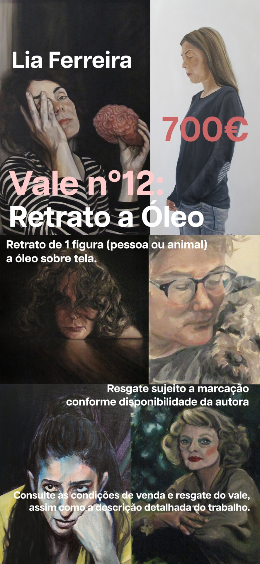 Retrato figurativo de 1 pessoa, da autoria de Lia Ferreira, a óleo sobre tela ou papel para óleo. Formato até ao A3, aproximadamente (pode variar ligeiramente).